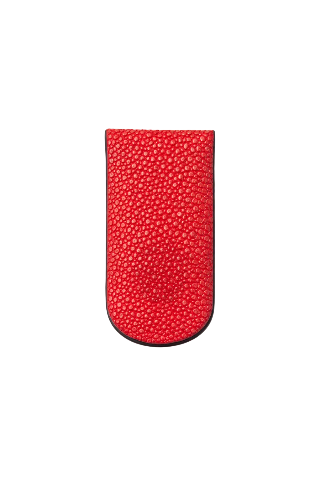 Elegante money clip realizzato in pregiata pelle di razza. Dotato di una chiusura magnetica, garantisce praticità e sicurezza, ideale per custodire le banconote con stile.