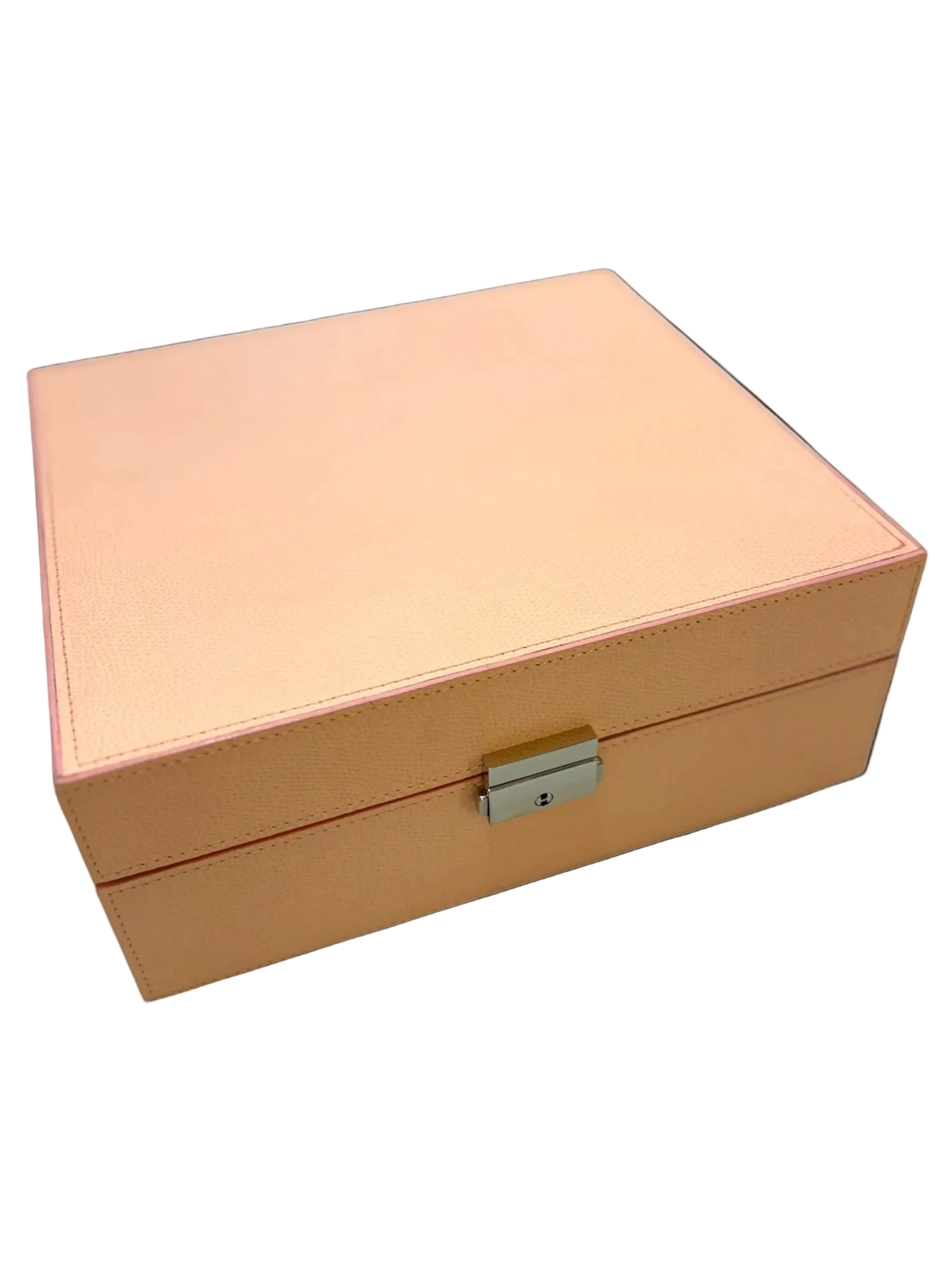 Questo raffinato porta gioie in pelle è la soluzione ideale per custodire con stile i tuoi accessori più preziosi. Realizzato con rivestimento esterno in pelle di alta qualità e interno morbido effetto velluto, protegge gioielli e orologi da graffi, polvere e urti.