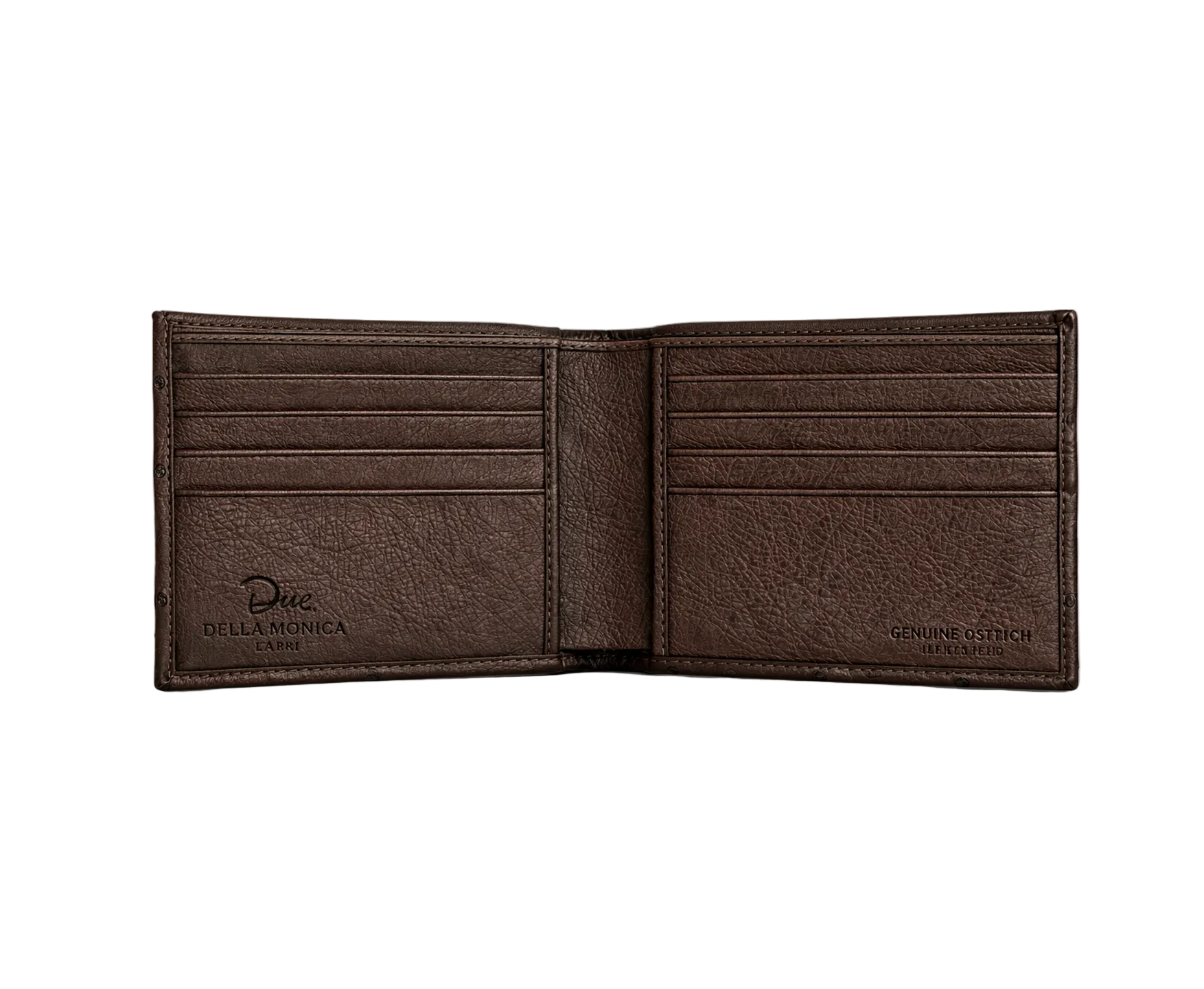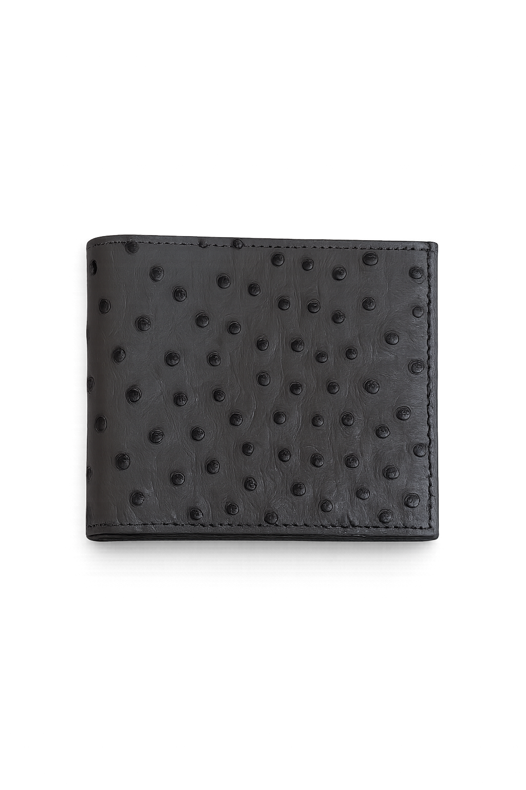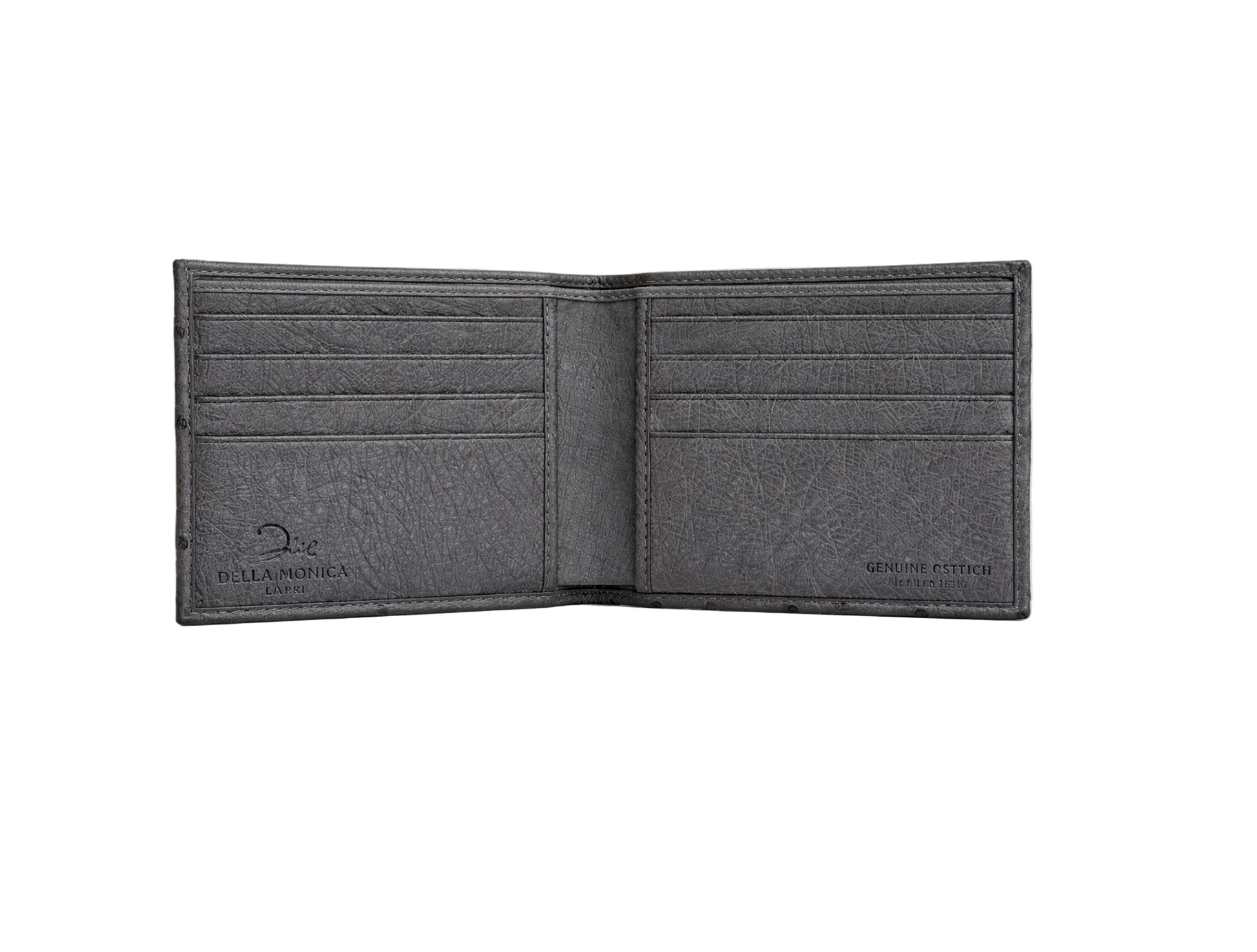 Portafoglio bifold realizzato in pregiata pelle di struzzo, espressione di eleganza contemporanea e raffinatezza artigianale.